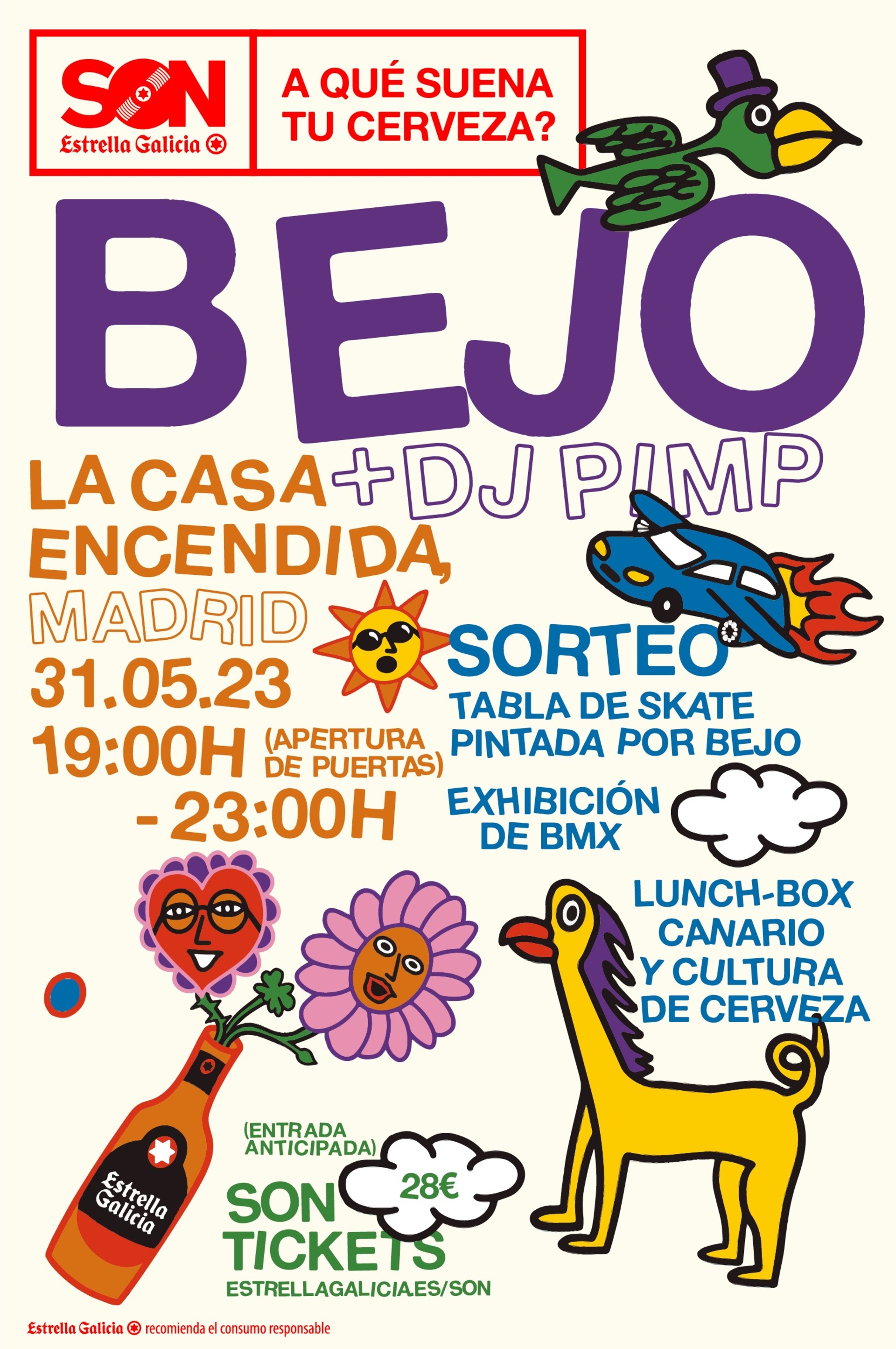SON Estrella Galicia trasciende su propio ADN para ofrecer al público experiencias que no hayan vivido antes. De esta forma, el proyecto musical cervecero se alía ahora con Bejo para proponer una jornada multidisciplinar en la que la música se fusionará con arte urbano, BMX, gastronomía, cultura de cerveza e impacto positivo. Esta cita única tendrá lugar el próximo miércoles 31 de mayo a partir de las 19:00 en La Casa Encendida de Madrid.