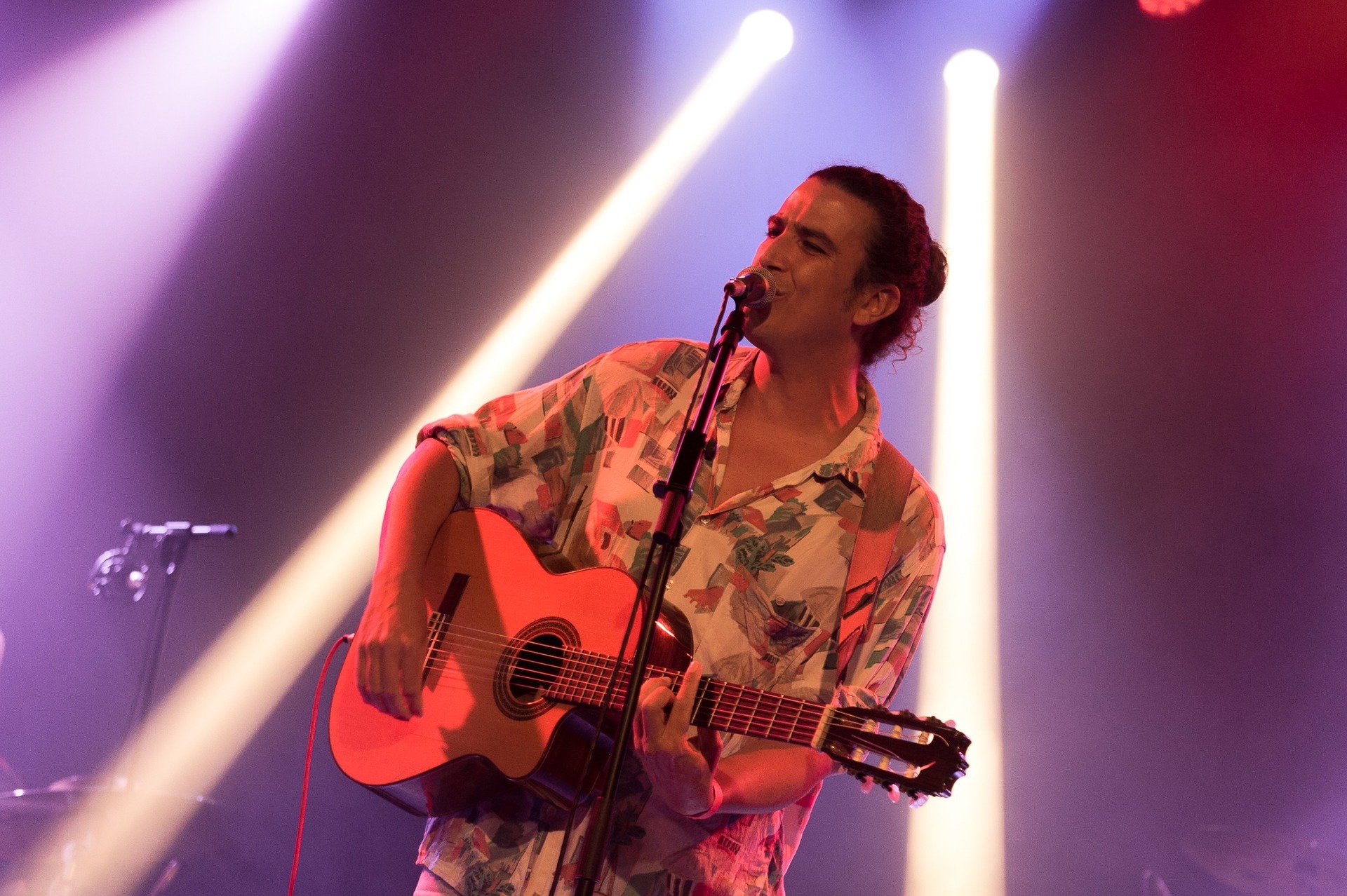 Así que allí estaba, expectante, en mi primera noche de Riviera post confinamiento, esperando a Mr. Kilombo. Creo que los primeros minutos de cada concierto dicen mucho de un artista y de su público, aquí la verdad es que flipé. Sonaban los primeros acordes de ‘Cortocircuitos’ y ya tenía Miki a todo el público cantando la canción de principio a fin. A tope desde el minuto uno.