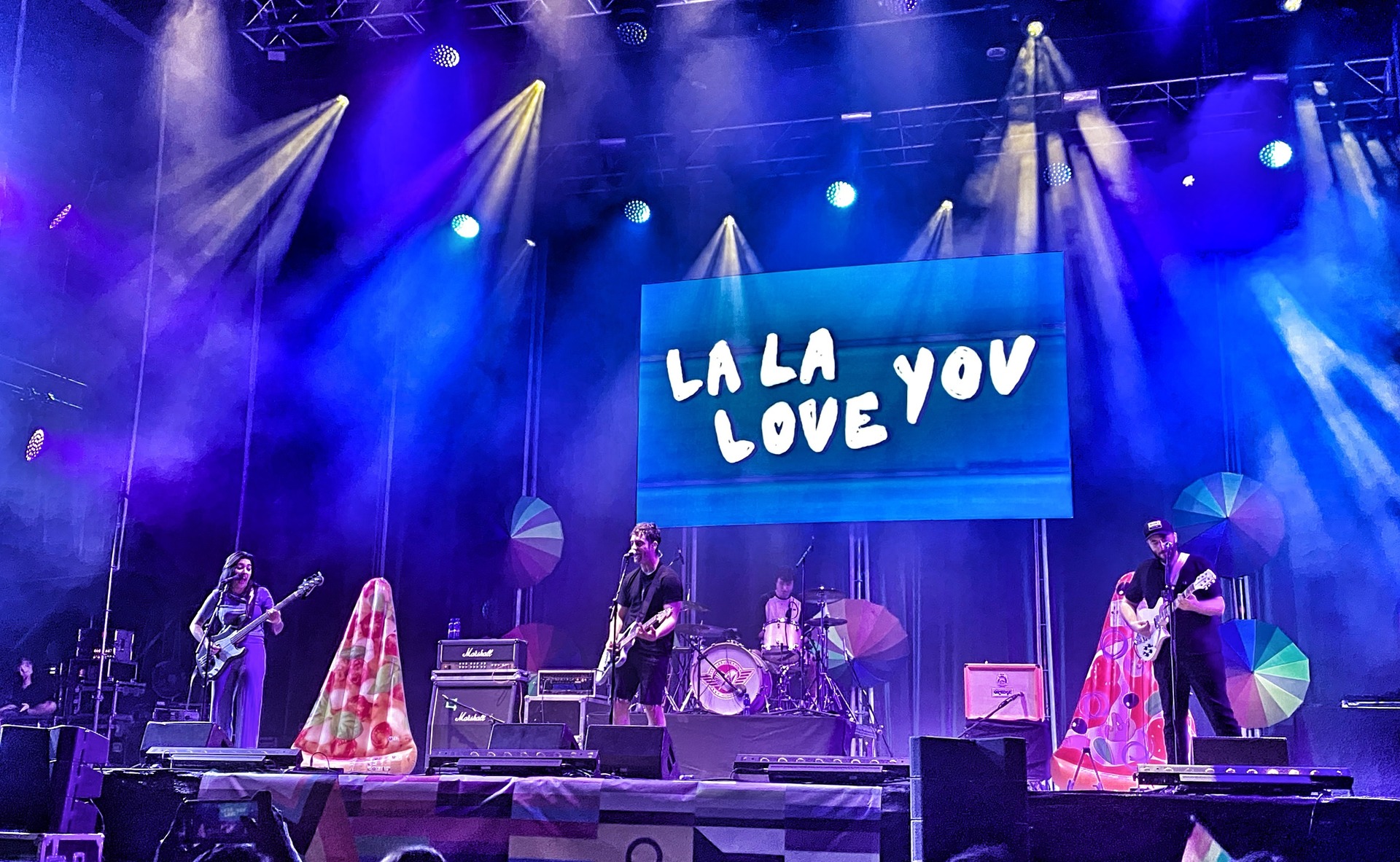 El grupo para un poco para hablarnos del La La Tinder, un chat donde todos podemos entrar y poner lo que queramos durante el concierto y lo vemos en pantalla grande, desde comentarios hasta emojis de todo tipo. Y después, el grupo nos deleitó con una versión del tema “Volverás” de Juniper Moon, entre el jolgorio de los comentarios que salían en la pantalla del escenario.