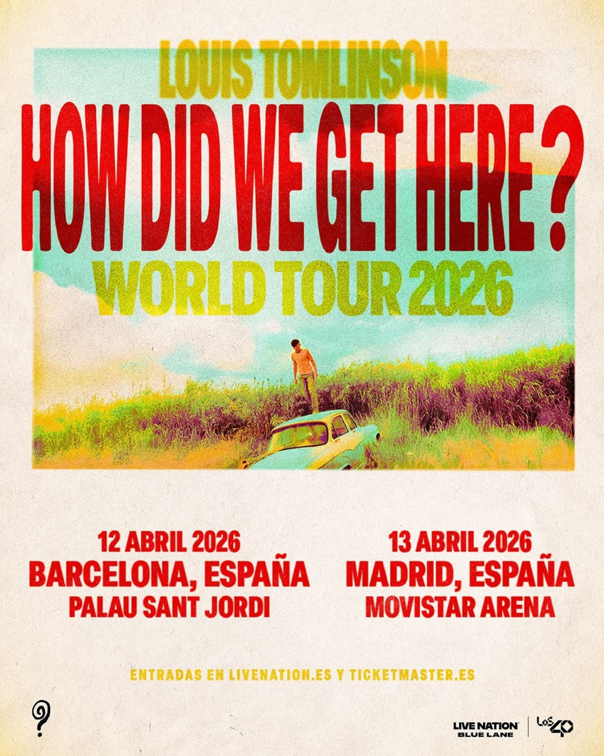 Louis Tomlinson incluirá España en su nueva gira mundial de arenas en 2026, con fechas en el Palau Sant Jordi de Barcelona (12 de abril) y el Movistar Arena de Madrid (13 de abril). La gira, que recorrerá Europa y Norteamérica desde marzo, llega tras el lanzamiento de su nuevo sencillo Lemonade y promete dos conciertos únicos para sus fans españoles.