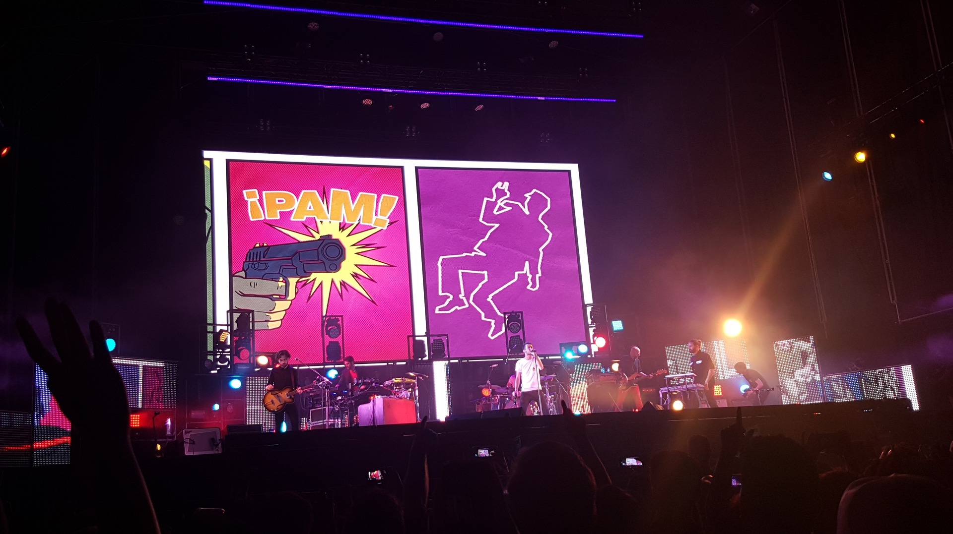 Pucho, ya liberado de los problemas de micro, se desató liderando a sus compañeros y al público. Vale, hubo un par de letras que se comió, pero convirtió esos fallos en minucias al lado de su acierto en los discursos, sus ya legendarios bailes y, lo que es más importante, su capacidad para enfrentarse de tú a tú con todo un estadio. Agitaba, desafiaba, cantaba, aullaba… por momentos vi a Freddie Mercury en su particular Wembley del sur de Madrid. Bravo, Pucho.
