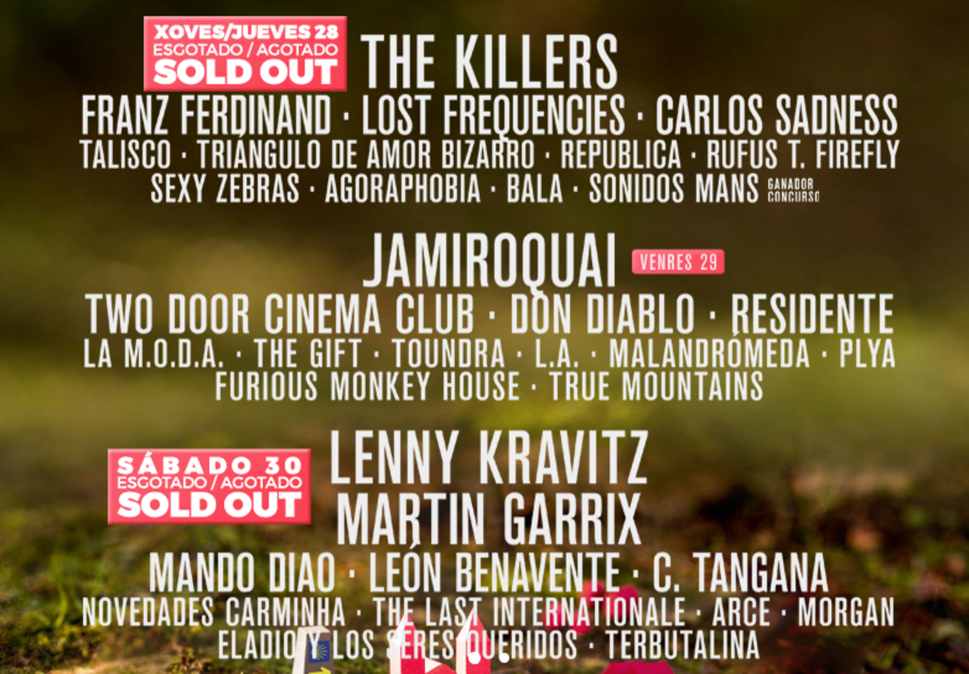 Oportunidades de ver a Jamiroquai en nuestro país hay bien pocas y dentro de un festival... menos, así que, sólo con eso ya tendríamos el viernes cubierto. Si a esto le sumas que los que vienen por detrás son Two Door Cinema Club la cosa ya se va poniendo seria. Su última 'gira' por España me pareció brutal y ya se probaron en festivales grandes como Madcool dando la talla. En el día de las rarezas hay ganas de ver de nuevo a Toundra, bailaremos con Residente y confiaremos en un buen setlist de L.A. (por favor que no se quede fuera 'Crystal Clear' como en su última gira). La M.O.D.A. será un valor seguro como siempre.