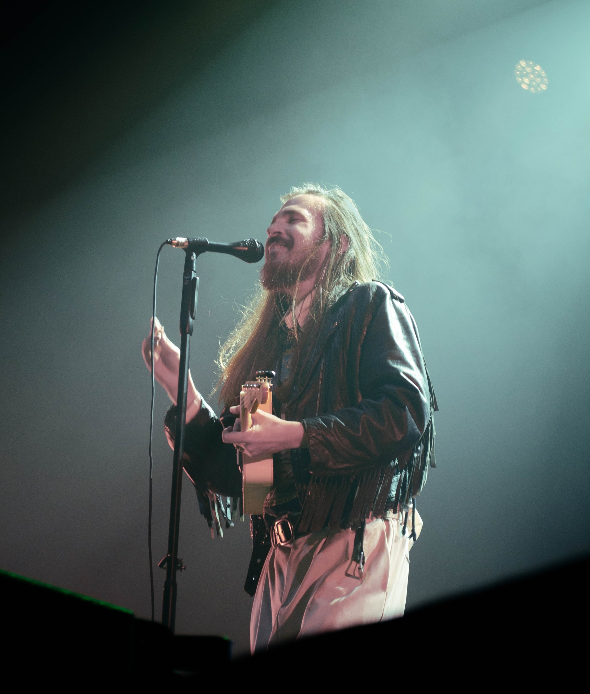 El cantante estuvo lleno de energía durante todo el concierto, sin parar de correr y saltar por todo el escenario, acompañado de guitarra o sin ella. Y el público igualaba su energía. Ya fuera con canciones tan nuevas como su último single ‘tuchico’ o con temas tan míticos como ‘Isla Morenita’, ‘Física Moderna’ o ‘Amor Papaya’, sus fans estaban entregados y cantaban cada canción con alegría.