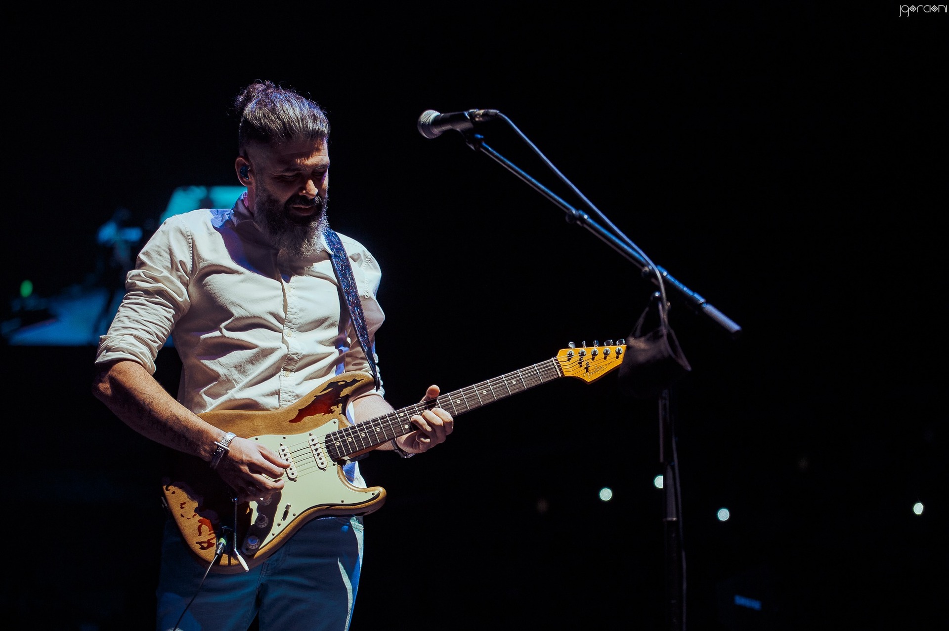 Destacar de arranque la buena organización y la original disposición del WiZink Center con un escenario 360 que, tengo que reconocer, a mi no me acaba de ilusionar. Ya le damos bastante trabajo al coco para que asimile que estás sentado, sin poder levantarte, sin gente alrededor, con una mascarilla… como para que además vea a la mitad de la banda mirando a un lado, a la otra al contrario y al cantante cruzando el escenario para repartir los temas entre el ala este y el ala oeste (eso si estás en uno de los fondos, si estás en el lateral la sensación de partido de tenis es total). Pero toca amoldarse y la elección no es caprichosa, sino que busca maximizar el espacio e igualar la visión casi desde cualquier punto del recinto. Amig@s hay que probar cosas porque no tenemos solución perfecta.