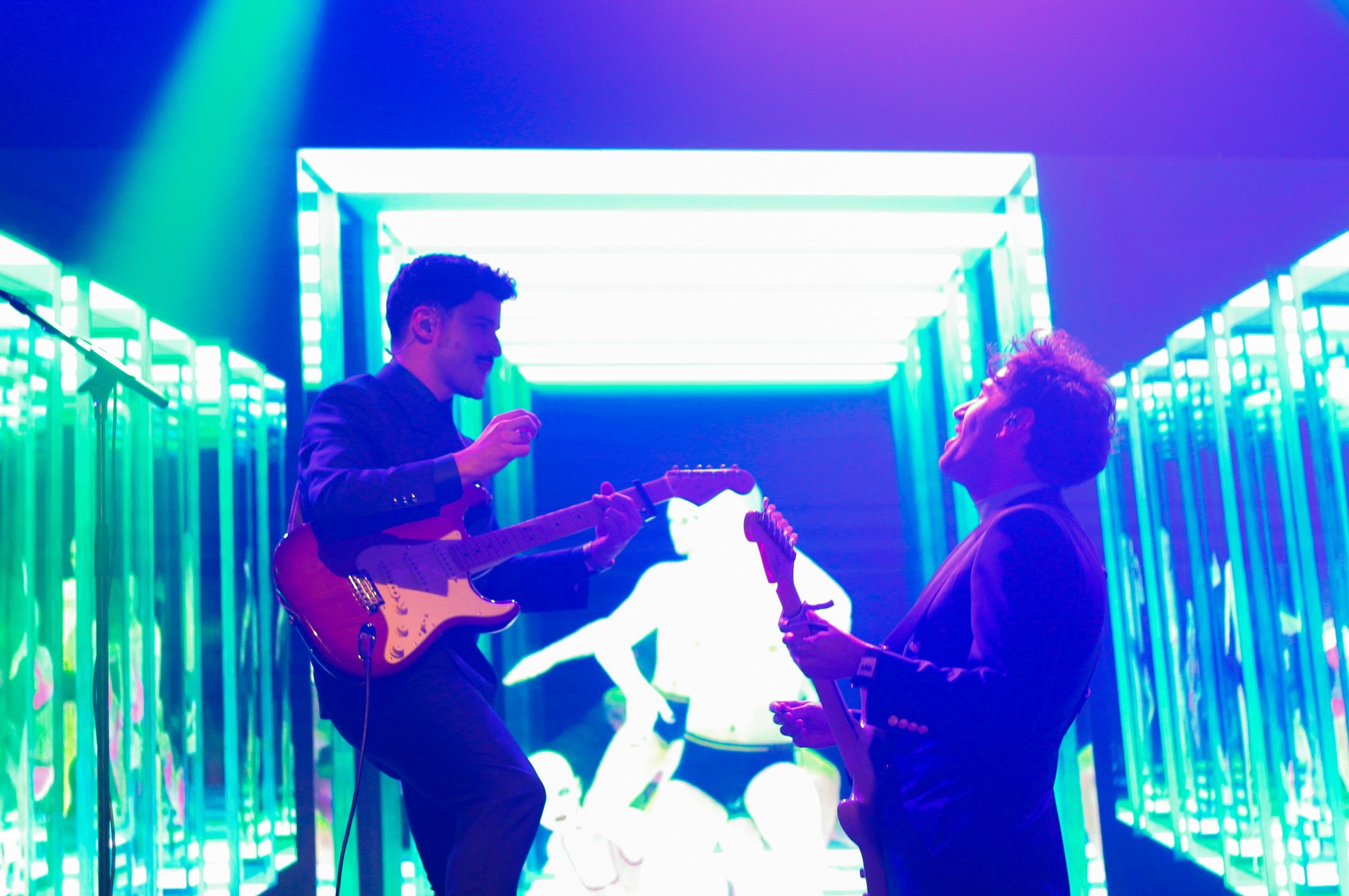 “Venimos del mismo lugar” suena en el estribillo del siguiente tema, del mismo lugar de todos los que adoramos a Miss Caffeina. Nosotros sí que sabemos contestar lo que para el público es la música de este grupo de Madrid: espectáculo, estilo y ritmos que se pegan hasta las entrañas. Todo ello acompañado de un juegos de espejos que ocupan el escenario de Miss Caffeina para hacerlo aún más espectacular.
