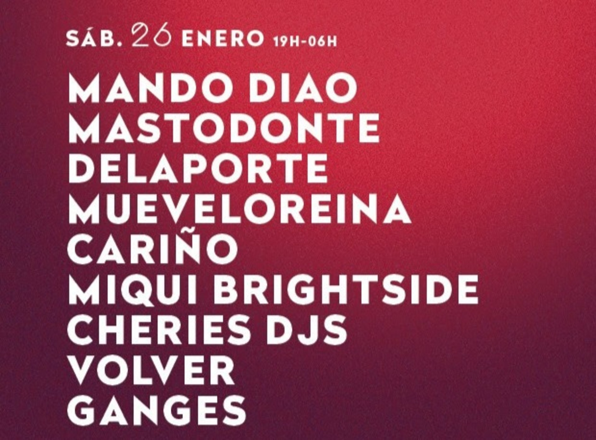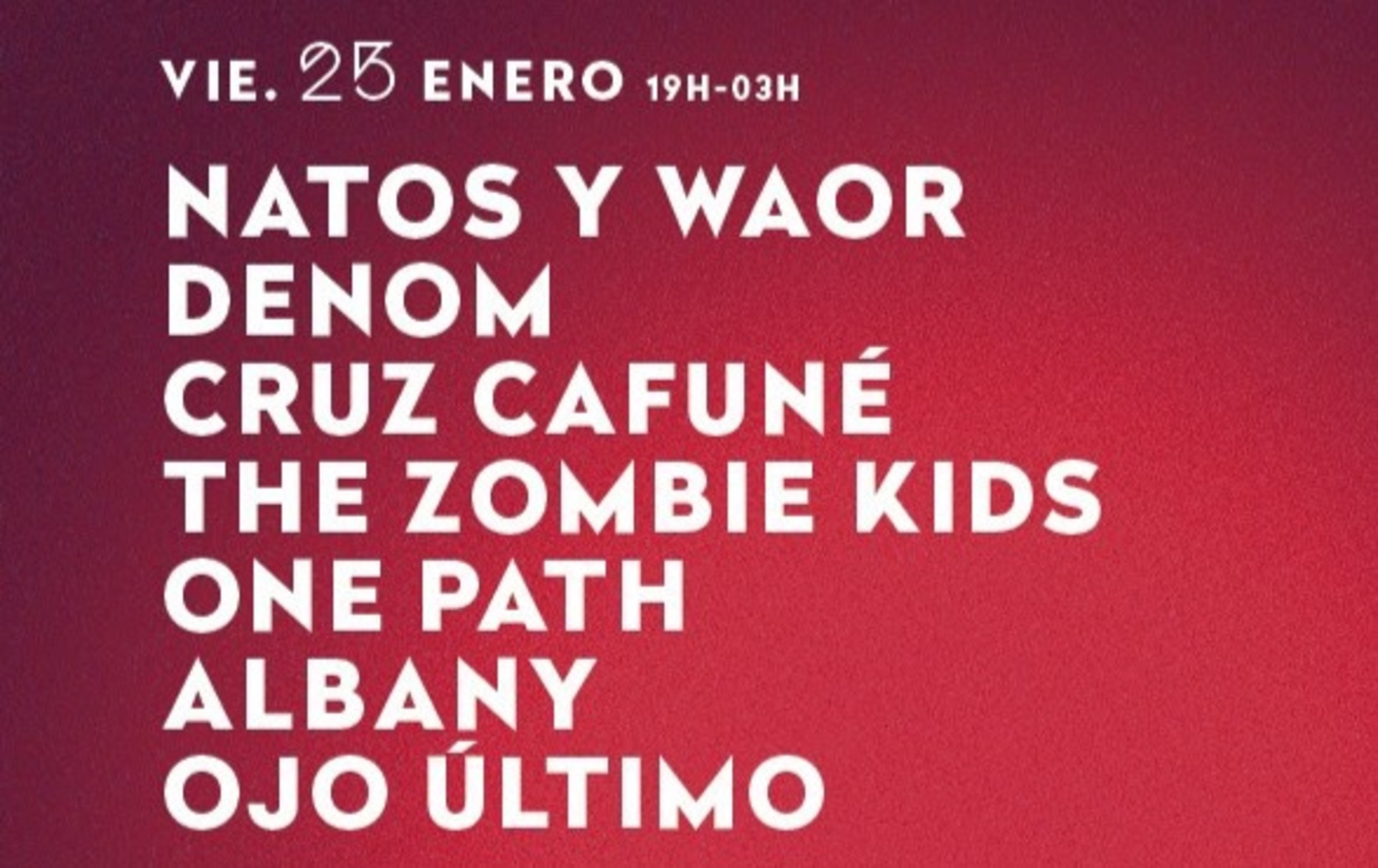 El cartel del primer día destacará por el rap y el trap, desde las 19:00h y hasta las 03:00h, con NATOS Y WAOR, DENOM, CRUZ CAFUNÉ, THE ZOMBIE KIDS, ONE PATH, ALBANY y OJO ÚLTIMO. El segundo, de 19:00h a 06:00h, abarcará una programación indie y electrónica con MANDO DIAO, MASTODONTE, DELAPORTE, MUEVELOREINA, CARIÑO, MIQUI BRIGHTSIDE, CHERIES DJS, VOLVER y GANGES. Los cabezas de cartel de ambos días (NATOS Y WAOR y MANDO DIAO) realizarán conciertos completos dentro del festival.