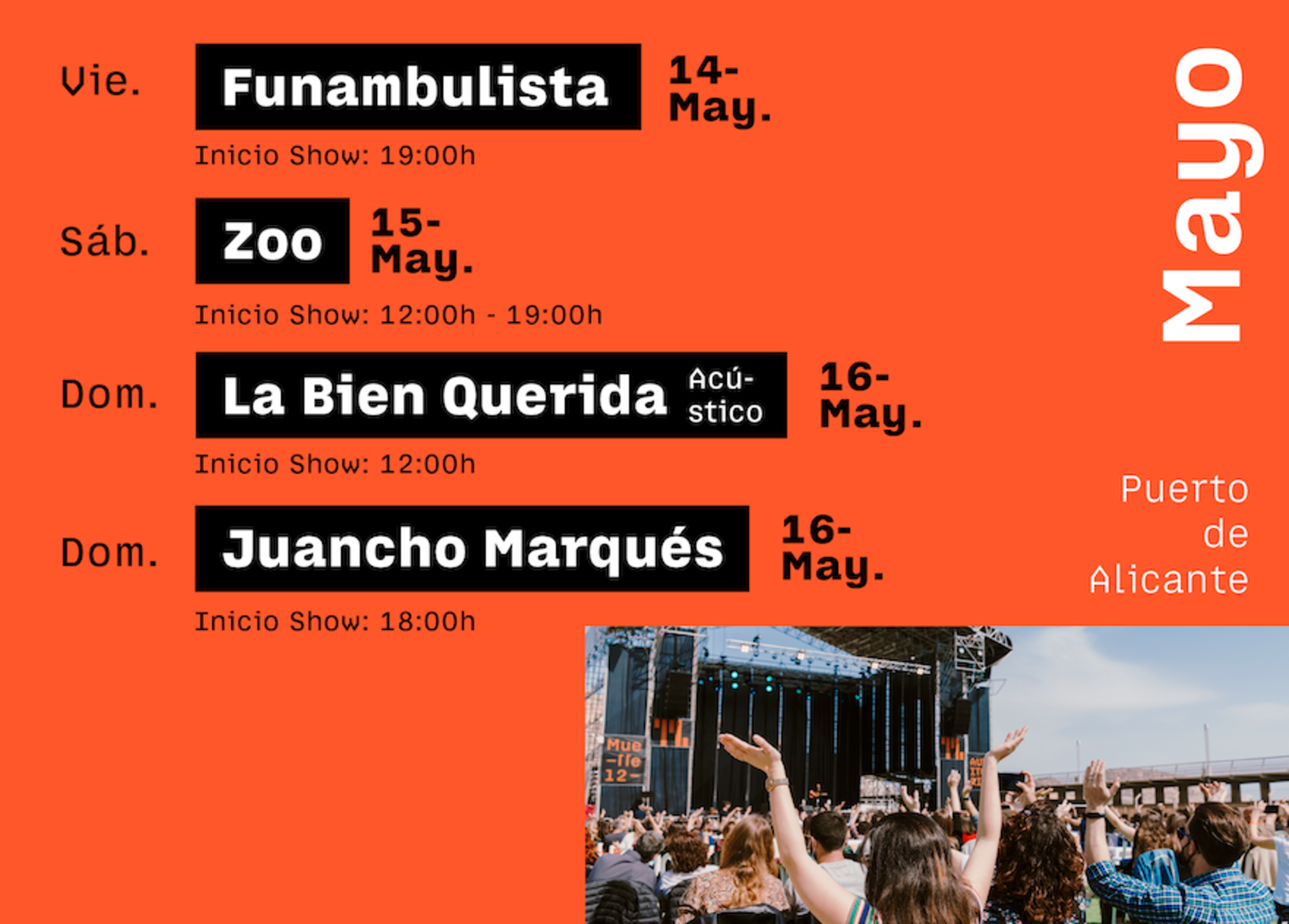Después de un finde intenso donde disfrutamos de los directos de DMBK y Fuel Fandango, llega una cuádruple apuesta que no dejará indiferente a nadie. El viernes podremos disfrutar del directo emocionante de un Funambulista que en cada concierto demuestra aquello de que por él no pasan los años. El sábado tendremos a los valencianos Zoo, el grupo del que todos hablan últimamente y que ha vuelto con las pilas bien cargadas para darlo todo el el Puerto.