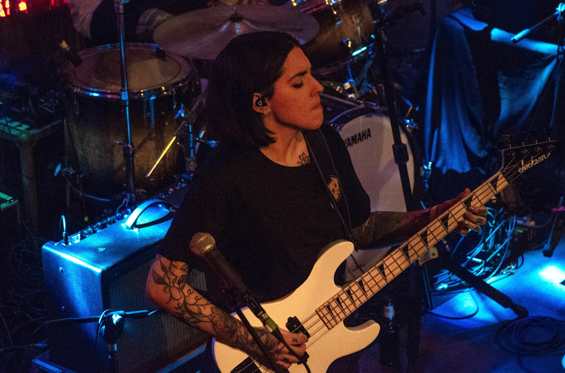Ahora bien, toca centrarse en el directo. Por desgracia, no pudimos llegar a ver el comienzo del concierto de Karavana, ya que las lluvias torrenciales que habían estado inundando la capital española la semana del encuentro causaron estragos en los medios de transporte. Corriendo para no perdernos nada, cuando alcanzamos Shoko el grupo de pop-rock se encontraba interpretando una versión de lo más macarrera del ya conocido tema de Bad Bunny “Tití Me Preguntó”. Fue un gran recibimiento, ya que no había alma en Shoko que no se la supiera y la estuviera coreando.