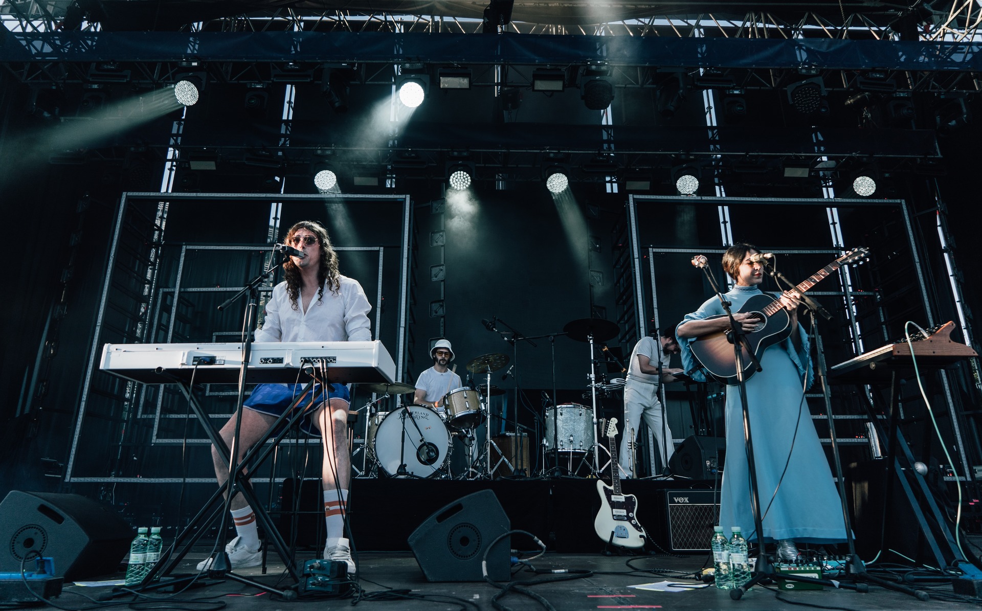 Los primeros suponen un proyecto que tan solo lleva dos conciertos en conjunto, una mezcla de sonidos que suena muy bien en directo. Por un lado encontramos la voz indie/folk tan reconocible de la artista malagueña Anni B Sweet, reconocida en su carrera musical por componer en ingles y que hace un par de años dio un giro por cantar en castellano. En el otro lado del proyecto encontramos a Los Estanques, a quienes hemos visto anteriormente en festivales como el Sonorama.