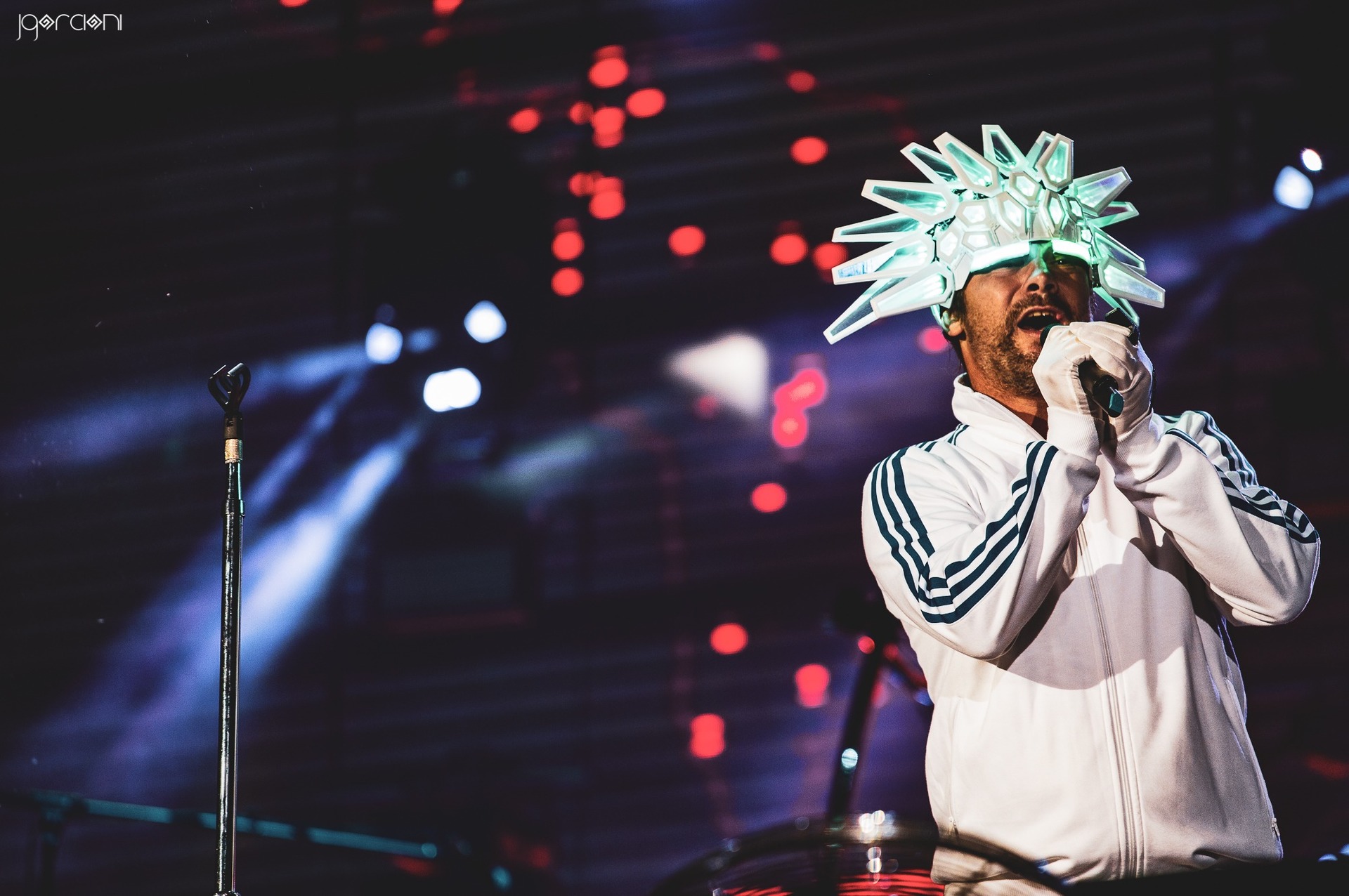 Tras un impasse de calidad musical de Toundra demostrando el poder de las guitarras y bajos encima del escenario llegábamos al plato fuerte de la noche y... la verdad, no fue tan fuerte. Igual que con el líder de Two Door Cinema Club, lo primero que pensamos fue 'qué le ha pasado a este tío'. Hacía tiempo que no veía a Jamiroquai sobre un escenario y ¡madre mía! vaya cambio. Hay un salto importante a nivel de estilo entre sus últimos álbumes como "Automaton" y los top noventeros con los que saltó a la fama. Y el salto todavía se hace mayor con la estética y la electricidad de aquellos maravillosos años y lo que es hoy en día. A la gente le gustó, a mí no mucho.